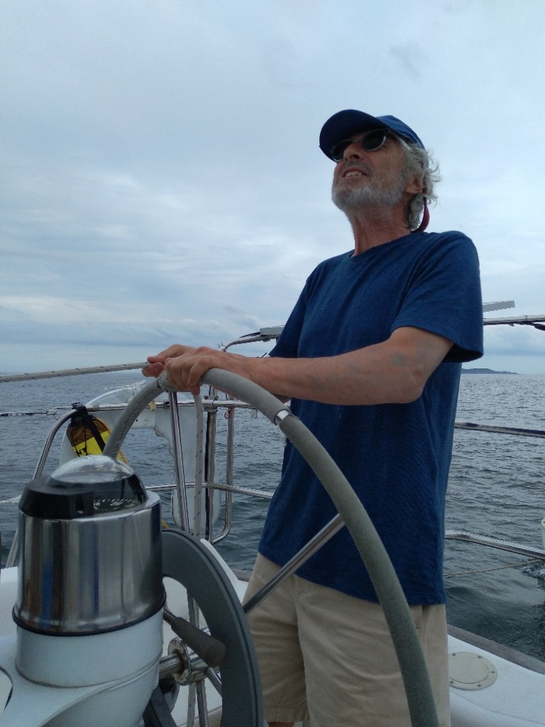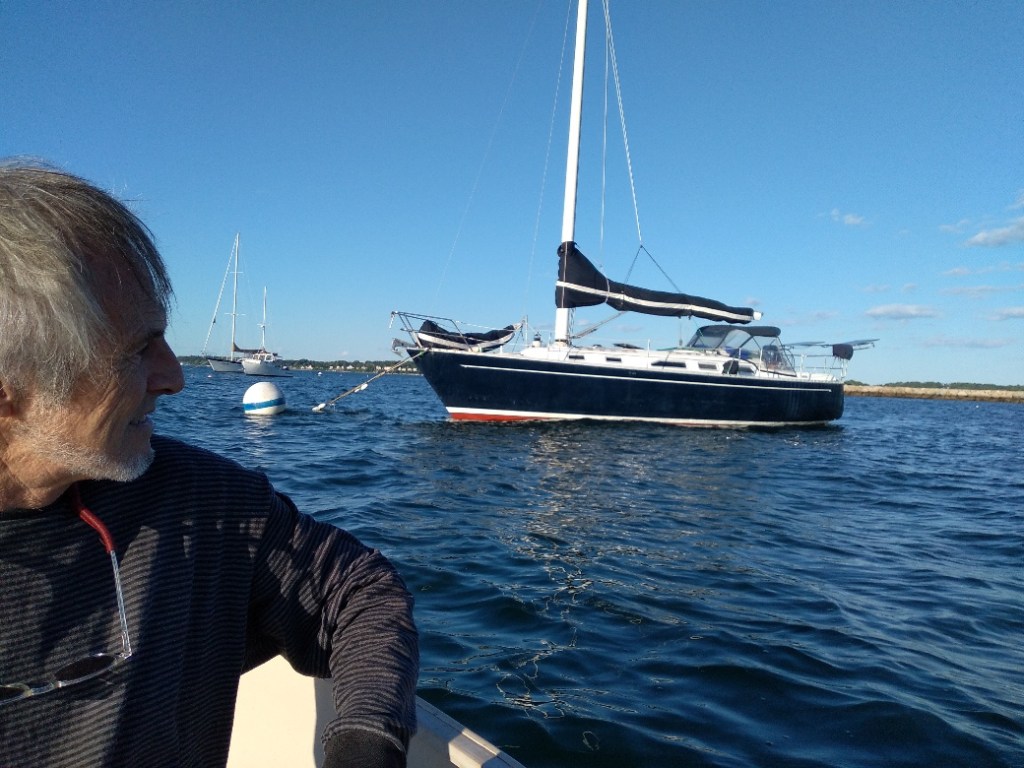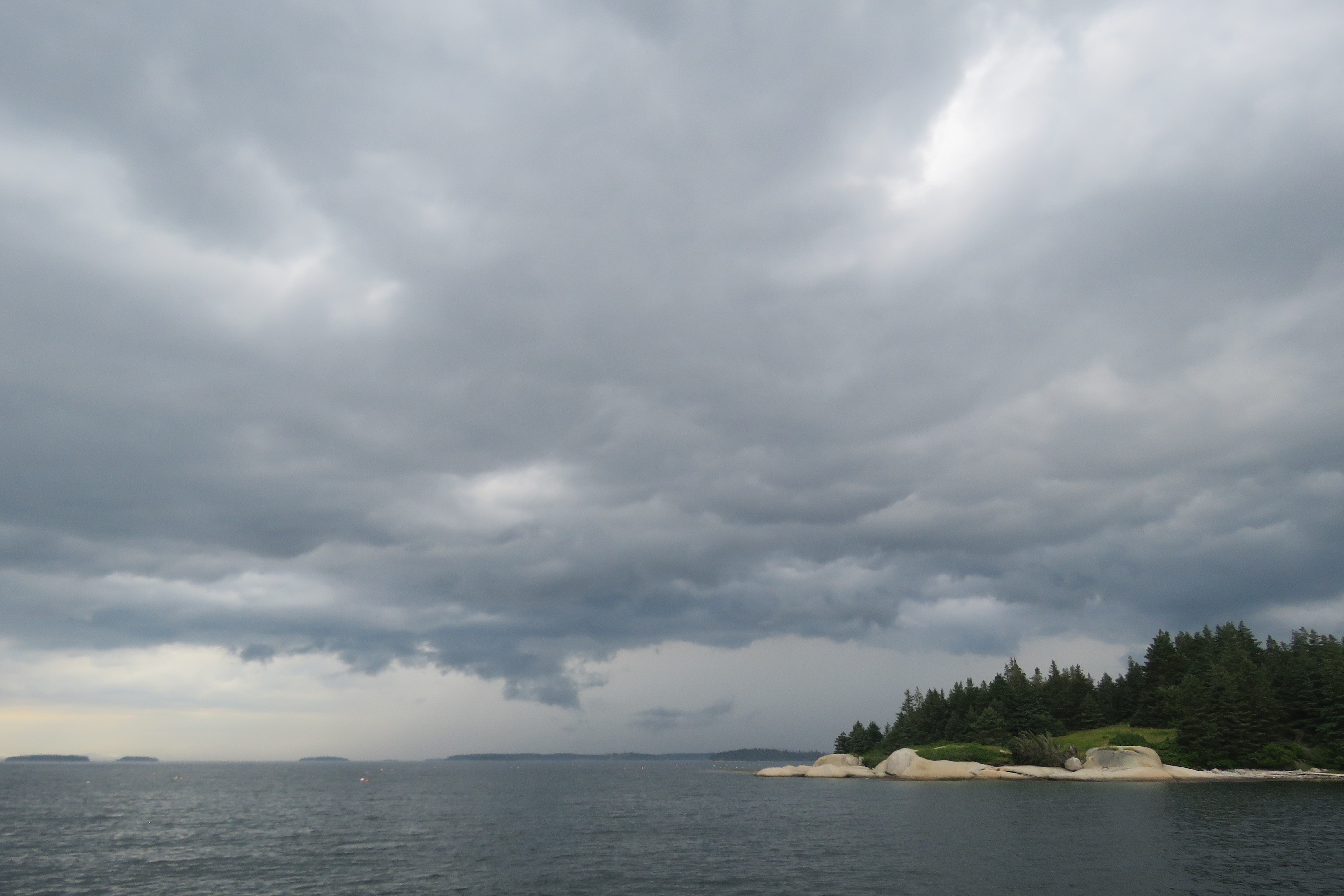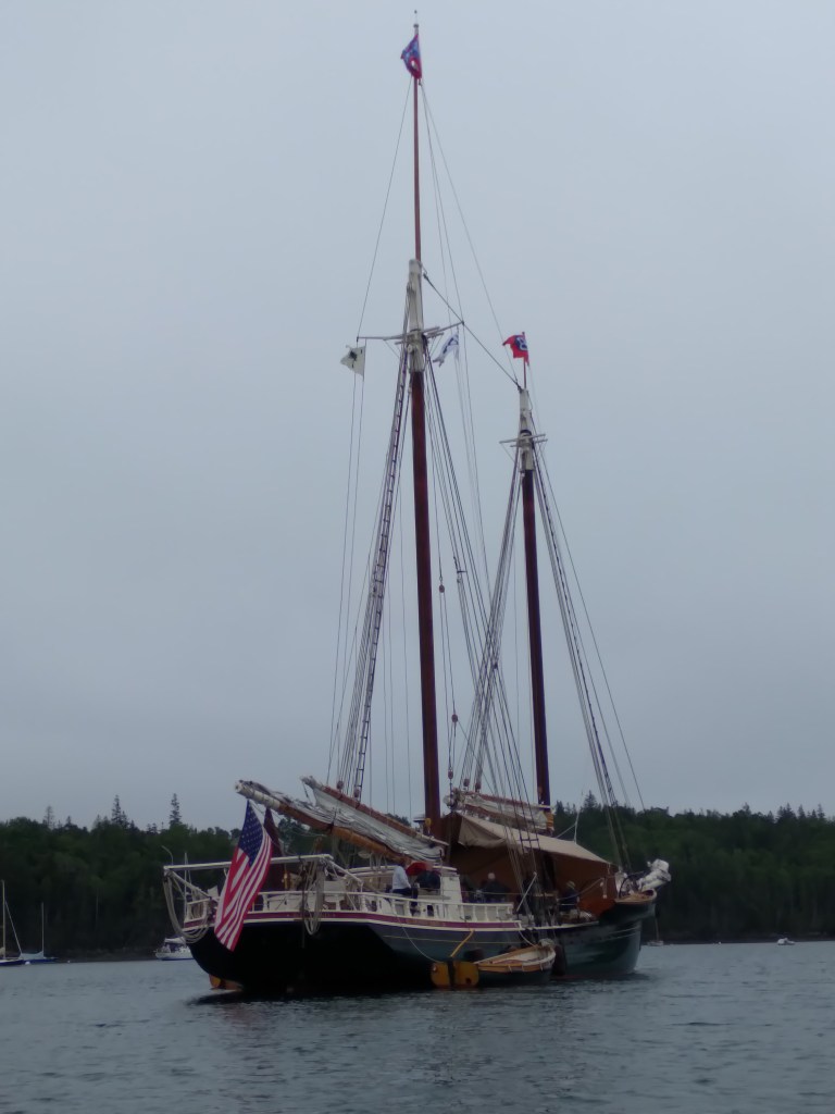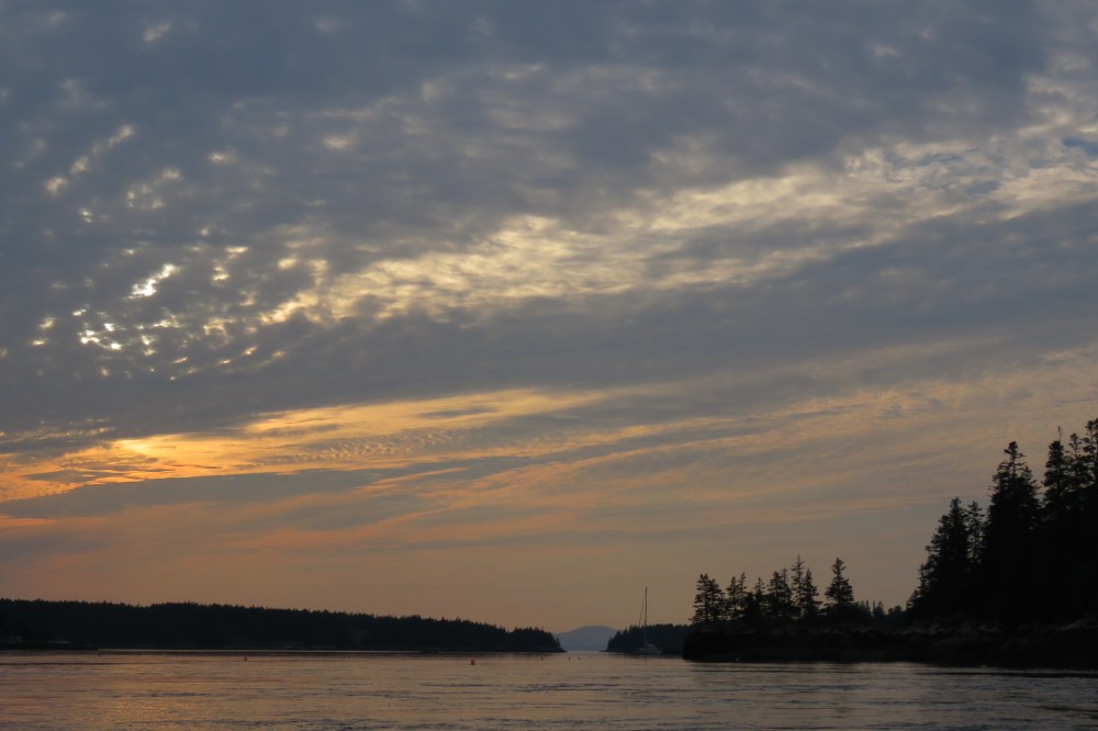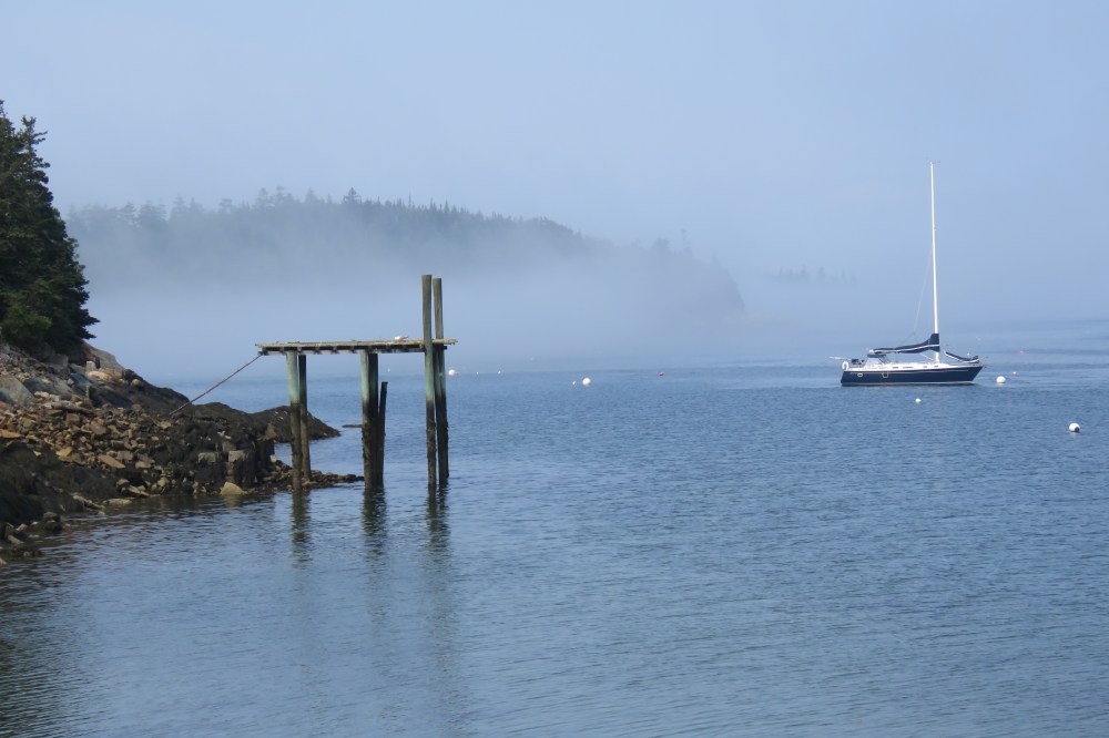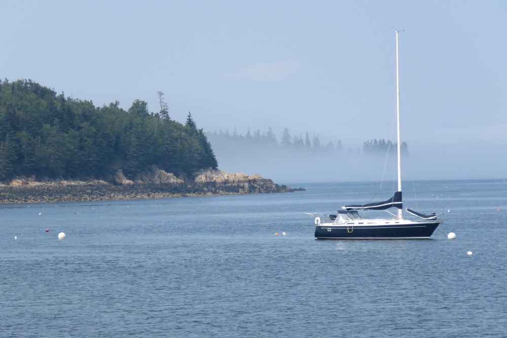 A lot has happened since the first week of July! Last you heard, we were near Port Clyde and the hurricane was about to bear down on us. Today, we’re in Northeast Harbor on Mt. Desert, which feels like another planet after all the remote harbors and islands we’ve visited so far. Here, the harbor is dominated by yachts, and the few lobster boats congregate in the inner harbor. Everywhere else we’ve been, lobstermen are king and we’ve encountered few cruising boats. Here, we can take our trash ashore, do laundry, and have a hot shower. In most harbors we’ve visited, a sign is posted at the dock: “Do not bring trash ashore,” and our hot showers have been powered by the sun or the engine. This is the quintessential cruising boat harbor, and while we appreciate the amenities and experiencing this historic harbor, our preference is for the remote islands where our only company is the loon, eagle, and guillemot.