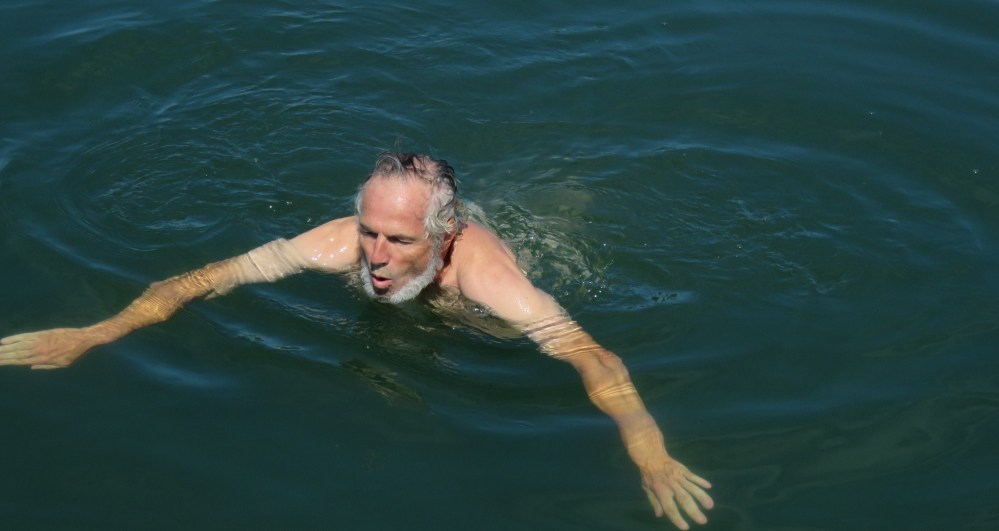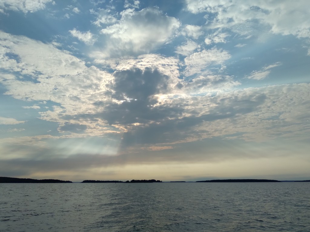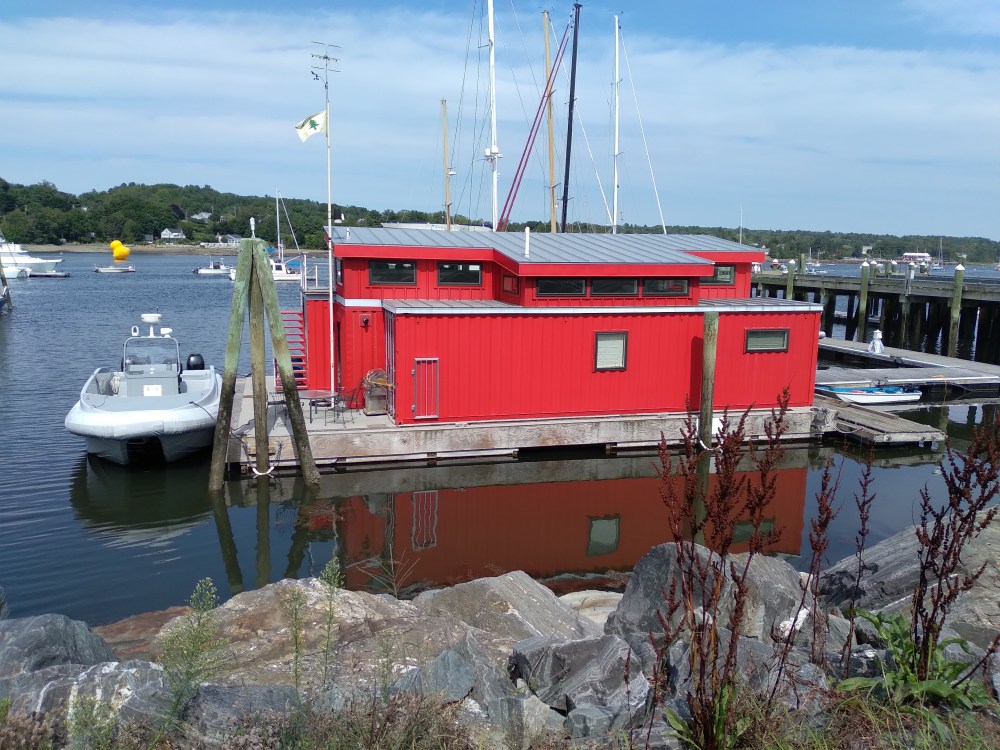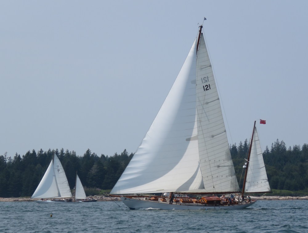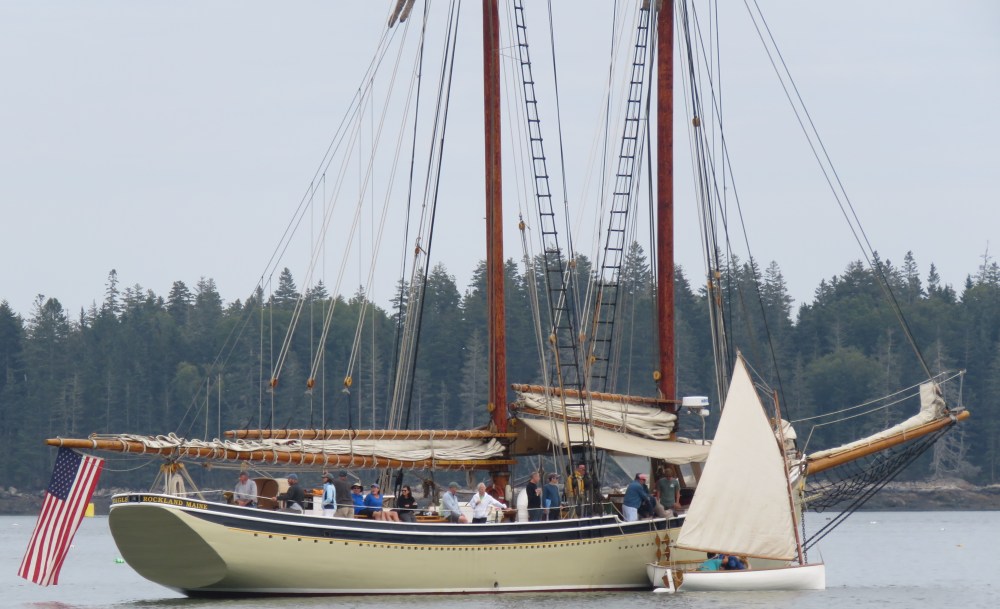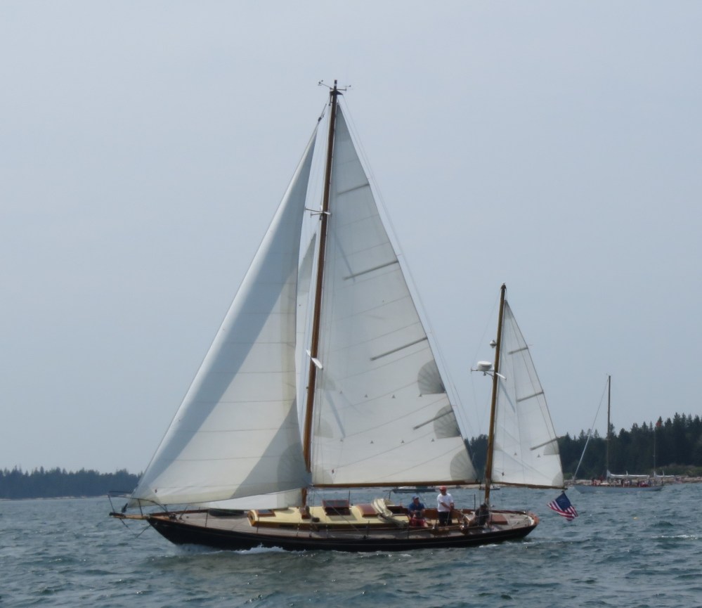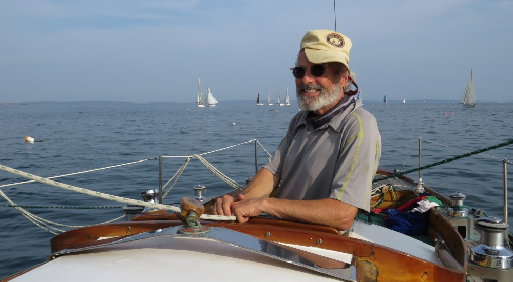 Settled in, thoughts turn to cocktail/vape hour and supper. Tasha is a very imaginative chef. Most nights she prepares something she has not made before, and it always comes out amazing! Last year’s nine-day cruise saw us sitting outside every evening for supper and a gorgeous sunset light show. Whether due to heavy rains this year or something else, the mosquitos have largely shut down that option. Instead, we take in our solar LED lights from up on deck to our fold-down table in the salon and enjoy a candlelit supper. We benefit from having a heat exchanger in our engine such that often we get to wash dinner dishes in hot water, unless we’ve already used it for hot showers. We’ve also used our camping sun shower—a black plastic bag and spray nozzle that heats up in the sun—both on deck and in our head for less luxurious but still hot showers. Sometimes we augment the hot water in the solar shower by heating some on the stove. These hot showers have been deliciously satisfying, only exceeded by the three lengthy ones we’ve had ashore. Another shower alternative is a quick saltwater dip in the ice cold Maine ocean followed by a warm water rinse from the hose in the cockpit. The outdoor showers are heavenly, especially when we have privacy from other boats. Sailing done for the day, we often play music, dance, sing, read out loud to each other from our small library, do the New Yorker crossword puzzles with some success, play Boggle, write in our journals, play keyboard and guitar, or just plain veg! Even on cold, rainy days when we’re sitting at anchor, we’re never bored.