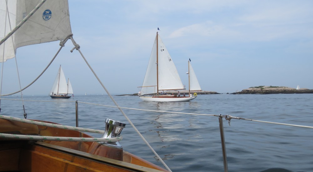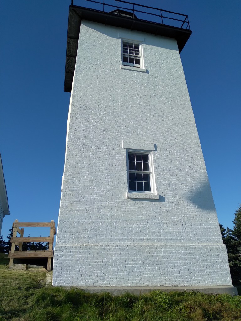 The boat performs well in 5 knots of wind or above. If we fall below 2 – 3 knots of boat speed, we start the engine with our sails up and motor until we find the wind again, which may or may not happen. Tasha is our intrepid navigator and has always managed to get us to our next anchorage before dusk. We’re aware that others are used to spending BOAT-bucks (Break Out Another Thousand), but we are cost-conscious boaters so tend to anchor or pick up a free mooring, rather than reserve a mooring or slip at a marina. We’ve only had to pay for overnight anchorage a handful of times. We’re also thrilled that for the price of a tablet and a $15/year subscription, we’ve upgraded our navigation system to a touchscreen, which makes it much easier to use. Typically, Tasha will plot a course, which appears as a line on the electronic chart that avoids low water, rocks, and ledges, but we always note where the red and green navigation buoys are and what they’re indicating. It’s amazing to think that massive schooners plied these waters before the rocks were known, the navigations aids were installed, and the charts were created, because there are many, many rocks and shallow areas. With the water rising and falling 11 feet every day, a boat like ours that draws four and a half feet may be able to sail a course at high tide when rocks are submerged but hit bottom at low tide.