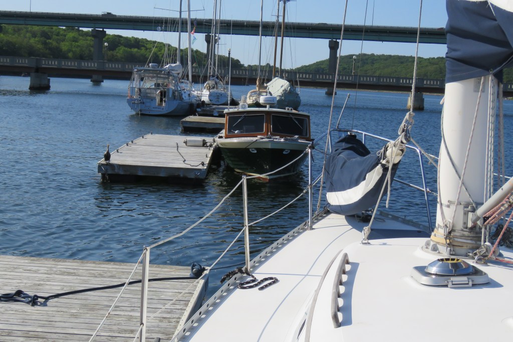 Lunch is often a fresh green salad with smoked salmon, tuna, chicken, and/or homemade hummus, made fresh onboard. To run the food processor, we turn on our 1000 watt inverter, which converts 12 volt power to 120 volts. We also use it to charge our laptops, razor, electric toothbrush, the Mighty, and Tasha’s electric keyboard. The main benefit of the fridge is to store fresh vegetables, which we love. We have been lucky enough to be at the right place at the right time to procure extremely fresh veggies at a couple of farmer’s markets. On a bi-weekly basis, we need to find a place to provision, refill our water tank, pump out the waste from the head (marine toilet), and top off our diesel tank, if necessary. If we’re lucky, we can do all these things in the same place. If not, we focus on our highest priority. Unlike most days when we anchor or pick up a mooring, these trips require that we pull up to a dock. We’ve gotten better at creeping up to a dock and tying up the three lines that hold our boat, and most times we don’t require a dock hand to help. However, there are tricky wind and current situations where the extra hands sure have been welcome. Some of our most challenging moments have been avoiding the unforgiving docks and other boats with strong currents not in our favor.