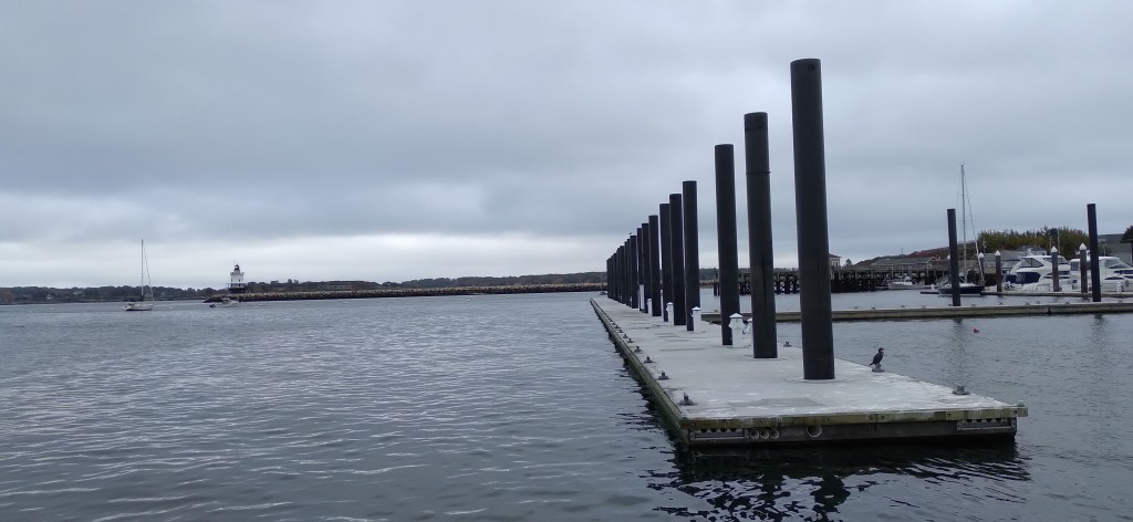 Rather than spending another week on our rolly mooring, we decided to check out Spring Point Marina in South Portland. The marina is just next to our mooring and is one of the newest and largest marinas in Maine, chock-a-block with mostly motorboats. As luck would continue to have it for us, the dockmaster is a former classmate of my kids, and he was more than happy to extend us the end-of-season rate, which was a great way to ease our way back ashore. Given the good night sleeps combined with the reasonable rates, we decided on the spot to sell the mooring and use Spring Point as our base in the shoulder seasons before and after DiMillo’s.