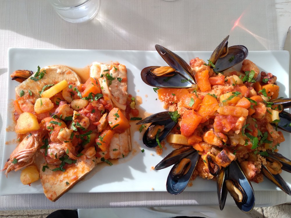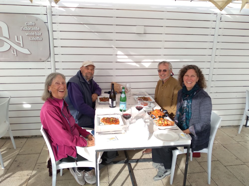 Merry Christmas from across the pond! Here we are having a Christmas lunch on the beach, a sumptuous meal of seafood and “deconstructed cannoli” for dessert—that was a first!