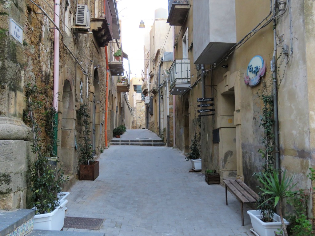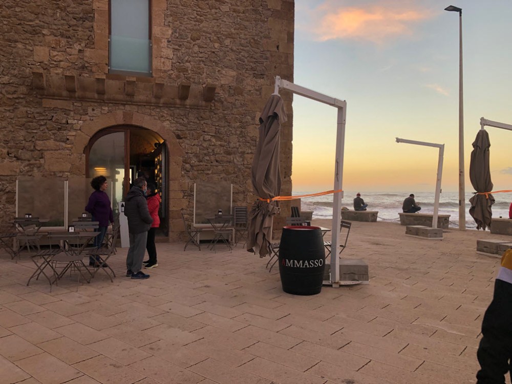 We drive four hours on windy mountainous roads to the northern seaside town of Cefalu known for its high rock fortress looming over the city and its Norman Cathedral. Unfortunately, although it was only 11:30, we were unable to ascend as it would have taken us an hour, and of course, they close at 1:30 for siesta! Walking a kilometer from our car to our AirB&B in the center of the old city was unexpected, as was the three hours it took to warm the place up. We did have a wonderful seaside meal adjacent to an ancient aqueduct before leaving the next day for the south coast.