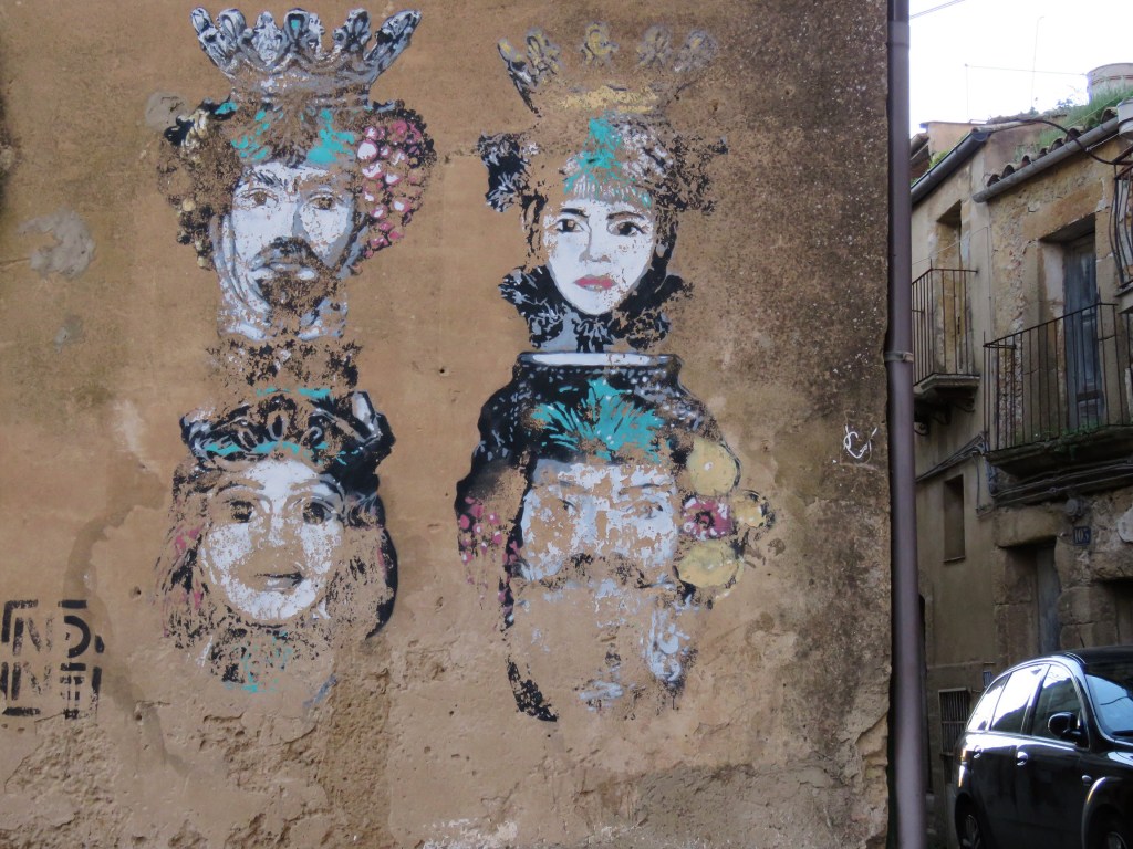 Our last stop is the Valley of the Temples in Agrigento, site of the best preserved Greek temples in the Mediterranean. And this being a nonlinear story, we speculate on what carries forward in time from those massive monuments, designed by architects and built by tens of thousands of slaves, perched on hilltops overlooking the sea. No longer a fortress city protecting its 200,000 inhabitants, 20,000 of them citizens, from attacking armies—Cartheginians, Selinuntines Romans, Normans—(who can keep track?) but today a tourist attraction inspiring awe at the sheer size of these massive temples to Zeus (at 370’x184’x65’ feet, it is the largest temple ever built), Concordia (counted as one of the best preserved temples in the world, precisely because it was later converted into a Christian church), and Hercules (of unusually elongated proportions). How did they move those massive blocks of sandstone up to the top of all those Doric columns? We learn they carved u-shaped grooves in each stone which they hoisted up with pullies. Well done boys! And today we wonder, why? A monument to god that nobody can go into? The sheer size of these monuments bespeaks none other than the power of those built it and as a corollary, the lack of power of those who are beholden to those who did, demarcating once again, the haves and have nots. Not much has changed, eh?