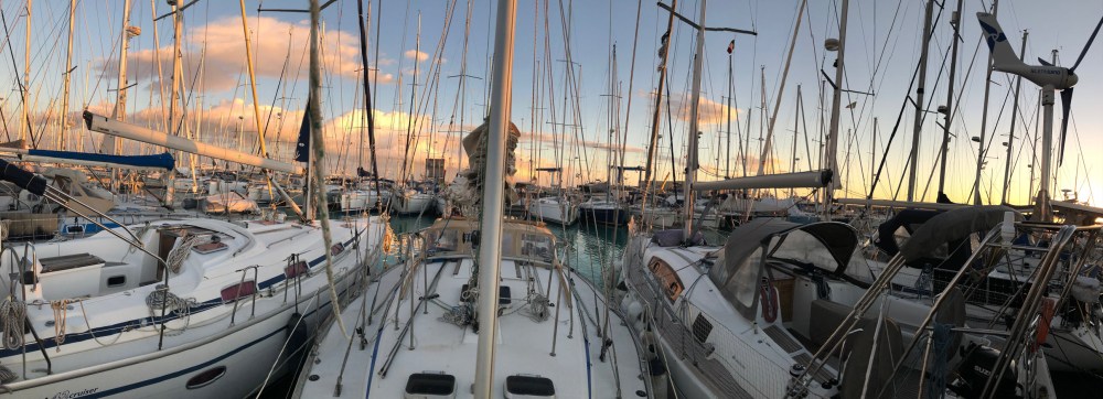 Unluckily, the cold snap coincided with a bug Tasha caught (no, it’s not COVID as we were both tested the day we returned), and we’ve spent a week lying low back in the warmth of Cascade II here at Marina di Ragusa. This gave us time to savor in big chunks and linger over the wonderful, slowly-built ending of Beautiful Ruins, as well as watching ongoing episodes of Montalbano, an Italian detective series from the late 90’s, in Italian with subtitles, much of which takes place just up the coast in Punta Secca, which we visited in the last blog.