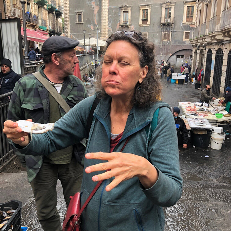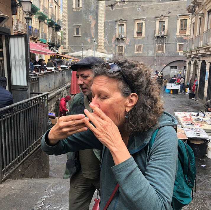 The interior of Sicily is a book title by Tracy Kidder: Mountains Beyond Mountains. Our little Renault chugs on its way up and coasts on its ways down, over and over again, uphill the view once tight and focused on the next hairpin turn, and downhill breathtakingly open and expansive when floating above the verdant valley below—be careful, easier than ever to take your eyes off the road here! The sporty five-speed is fun to shift and drive, so it’s easy to appreciate the growth of the little sportscars and road rallies following the war. Forest green were British makes, blue French, silver German, and, of course, red cars were Italian. A criss-cross of masking tape across your headlamps and your car was good to go to race around the countryside. The lines on the road are merely wasted paint; Europeans will pass you even if you can read the license plate of the car in the other lane coming at you. Passed cars nudge as close to the guardrail as possible, just to allow a few more inches of passing space. The difference between the performance cars and the little cars like ours is quite clear when everything is a two-lane road.