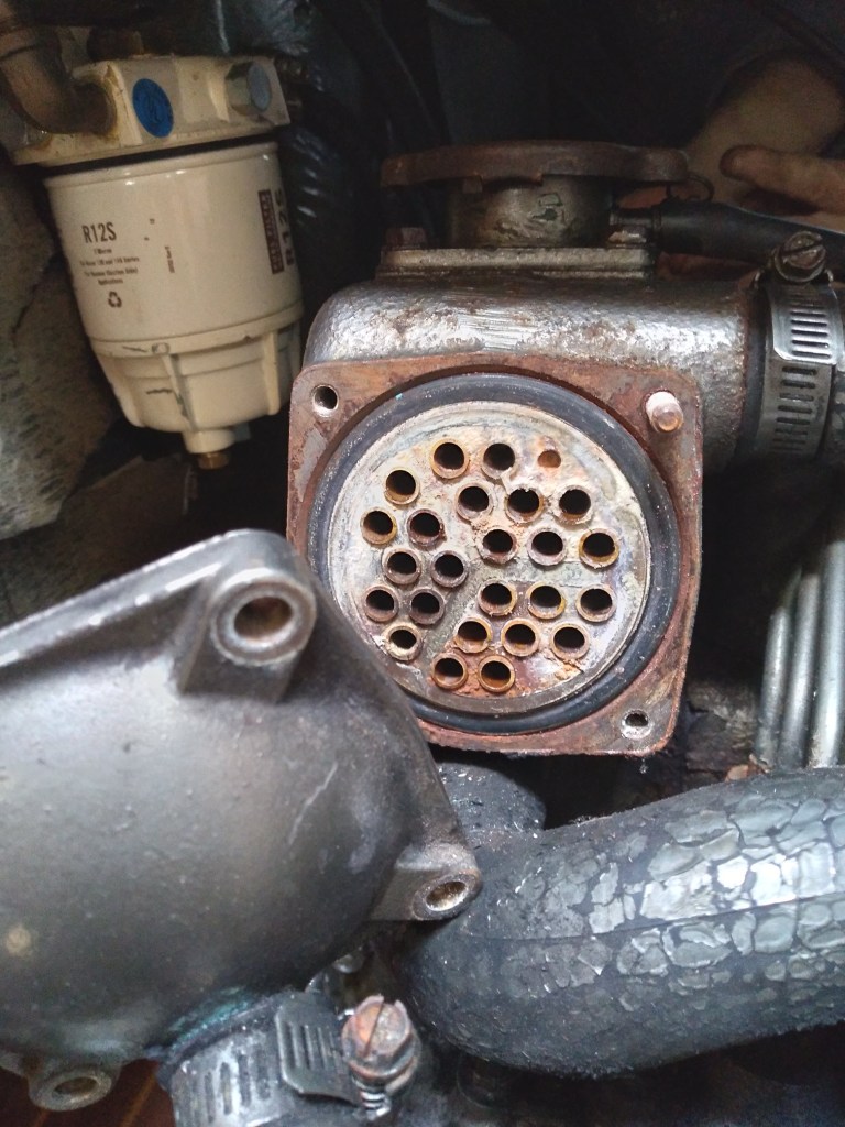 Will reaches out to our friendly mechanic Alec whom we met in Belfast and has been beyond helpful to us as we continue to learn about our diesel engine. His first question is, “Did you open the raw water sea cock?” “SHIT!” we both utter out loud when we realize that we’d made a major, rookie blunder. The all-important sea cock supplies sea water to the engine to help cool it while it’s running, along with fresh water coolant. No sea water and the engine overheats in a hurry, along with burning out the impeller, the little rubber gadget that circulates water through the engine, and melting the plastic 60-degree exhaust. OUCH! That is a painful learning experience that we will never repeat. The good news is that in the process, we learn how to replace the impeller, inspect and clean the heat exchanger, and flush the hoses of impeller debris, of which there was plenty.