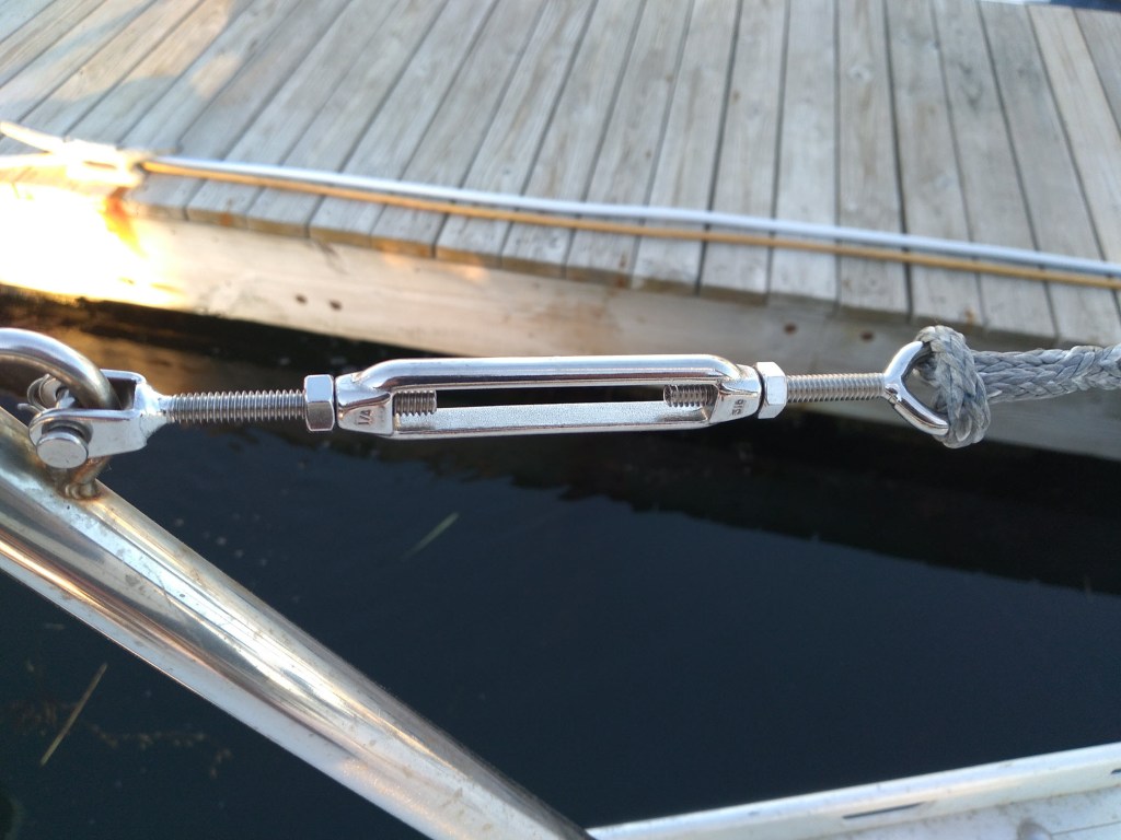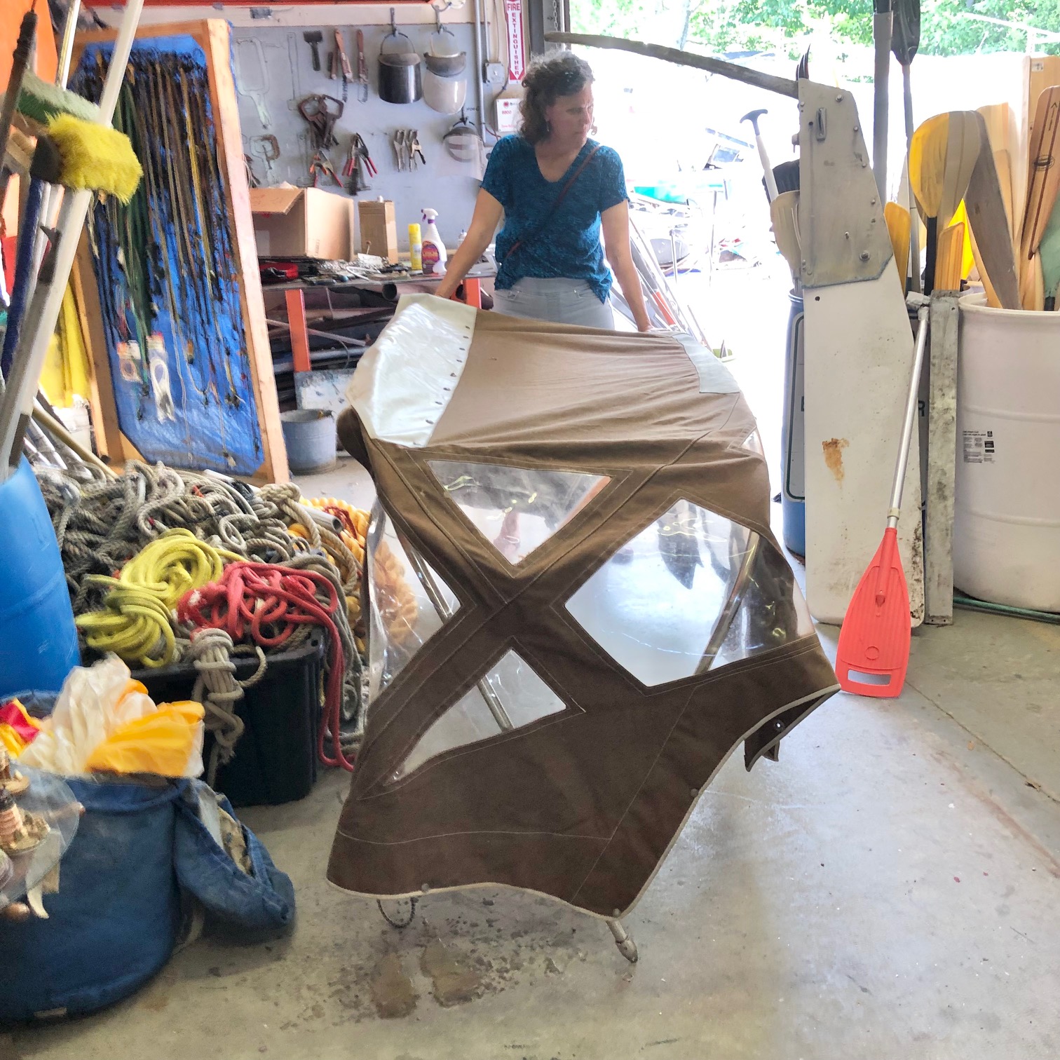 We’re getting ready to move onto the boat and decide to install our bimini and dodger. The bimini had eluded us when we bought the boat so we never used it. This year we decide to try it again and realize the deck fittings that the thing attaches to were installed backwards such that there was no way it could attach. We reverse the fittings and voila, the bimini now slips directly into the slots as it should.