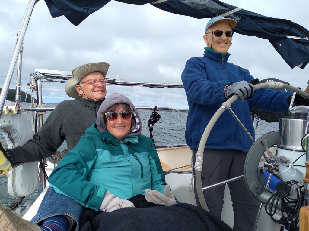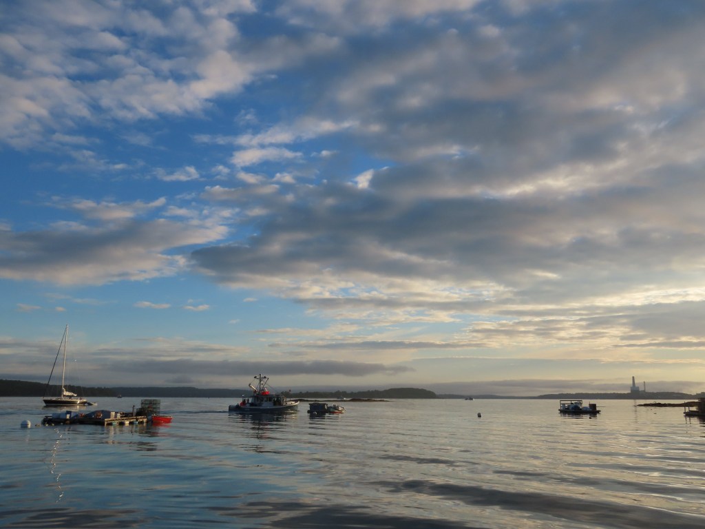 We take various friends out for a sail locally in Casco Bay, including a birthday cruise to the Goslings and taking the dinghy ashore on the white sand beach on Long Island. After walking across the island, we discover a small café and buy a blueberry pie, which we share in the cockpit.