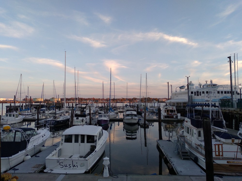 Almost three weeks have gone by, and we’re now settled into our winter slip at DiMillo’s Marina on Commercial St. in downtown Portland. It’s been quite a transition from life at sea to life with one foot on land and one on the boat. Whereas previously we rowed our dinghy to get ashore from a mooring or anchor, now we step out of our boat onto a dock and drive the car when we need to get somewhere on land. It sure is different, we’re getting used to it, and so far so great! Here’s how we got here.