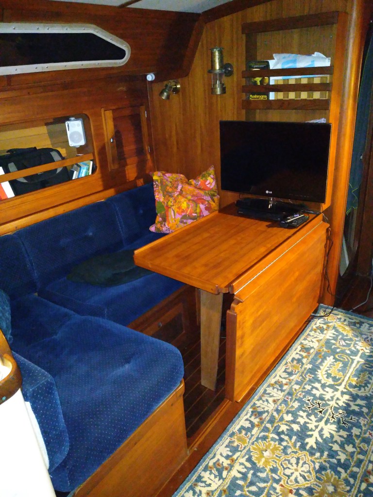 In many ways, living aboard the boat remains a constant from the summer—our beautiful cabin is the same one we’ve enjoyed for months, with its rich teak, cozy settee and v-berth, and functional, compact galley; we still cook in the galley and eat by solar candlelight; and it continues to feel great to be in such close proximity with each other day in and day out.