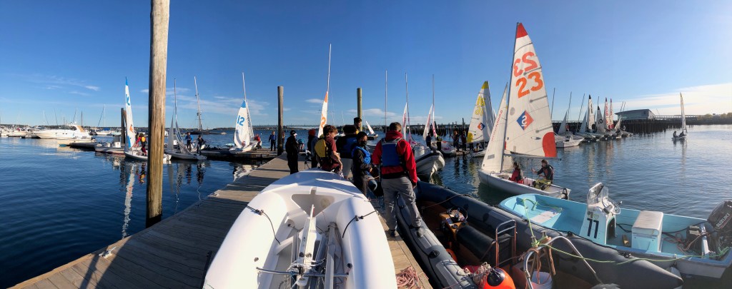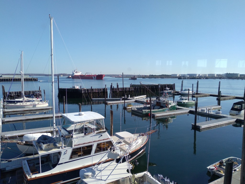 Rather than spending another week on our rolly mooring, we decided to check out Spring Point Marina in South Portland. The marina is just next to our mooring and is one of the newest and largest marinas in Maine, chock-a-block with mostly motorboats. As luck would continue to have it for us, the dockmaster is a former classmate of my kids, and he was more than happy to extend us the end-of-season rate, which was a great way to ease our way back ashore. Given the good night sleeps combined with the reasonable rates, we decided on the spot to sell the mooring and use Spring Point as our base in the shoulder seasons before and after DiMillo’s.