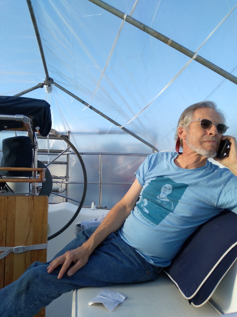 And oddly, Will and I have been spending more time apart, as we each sometimes go off in separate directions for this or that. Will goes to the hardware store, and I meet up with a friend for an early morning coffee. I go to Saturday and Sunday outdoor dance, and Will spends two days helping another live-aboard shrink wrap his boat. I take my laptop to the upstairs area of DiMillo’s ferry boat restaurant to do work on my computer, and Will drives to Boston to meet with an architecture client.
