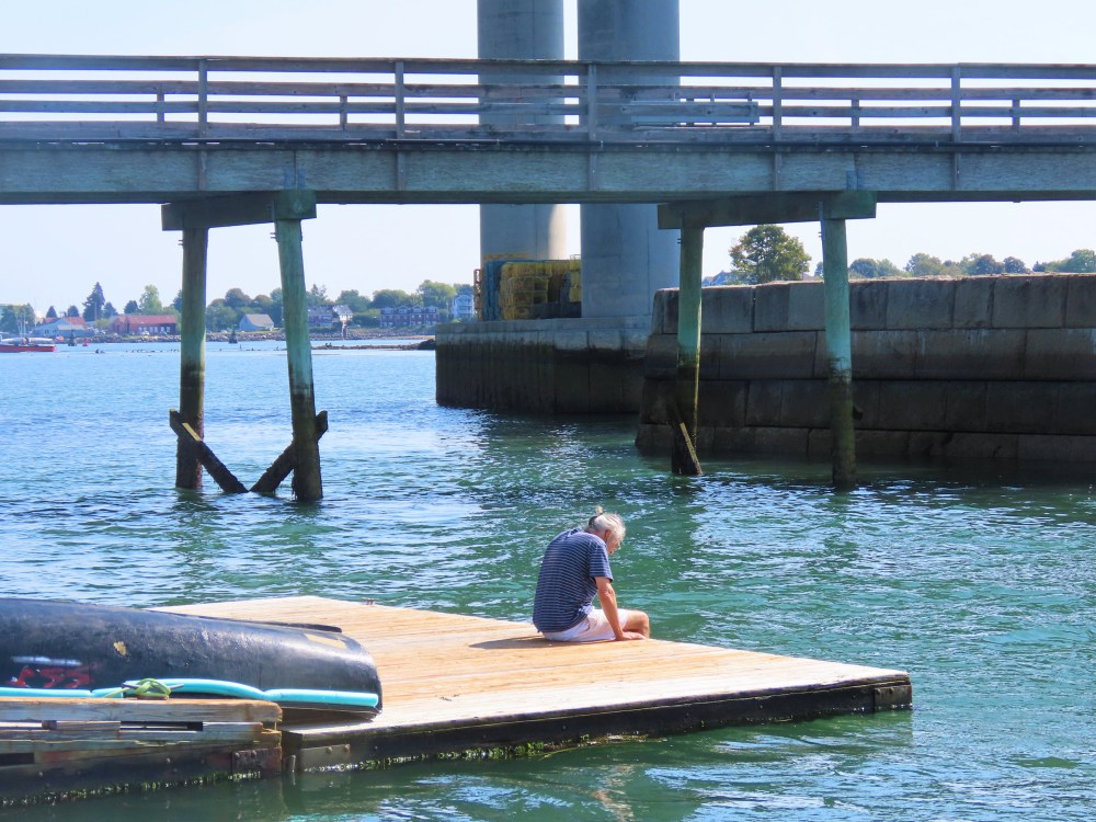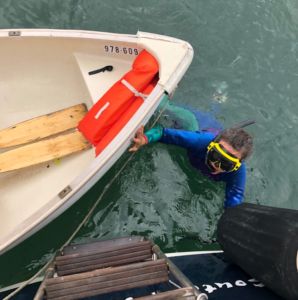 Our neighbor practicing boat yoga: Untangling Lobster Pot From Anchor pose