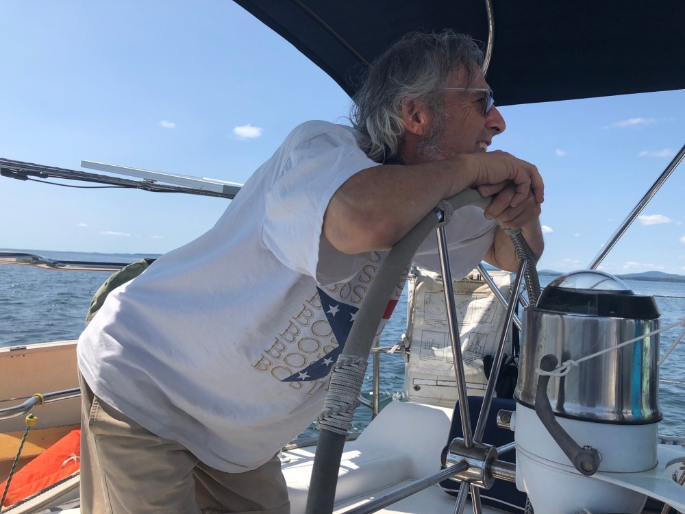 After a wonderful visit with my son, daughter-in-law, and mother, I hopped in a car and drove three hours inland to Toothaker Island on Mooselookmeguntic Lake. Will and Sandy joined me after a couple of days, and we all enjoyed the scene that happens there each year around this time, colloquially known as “The Party.” Communal cooking and feasting at The Clubhouse, camping and swimming, spontaneous conversation and music, and an overall spirit of community has made this island of ex-sailors living off-the-grid and their three generations of extended family a magical touchstone for me for many years. I was glad to share it with Will and our new friend.