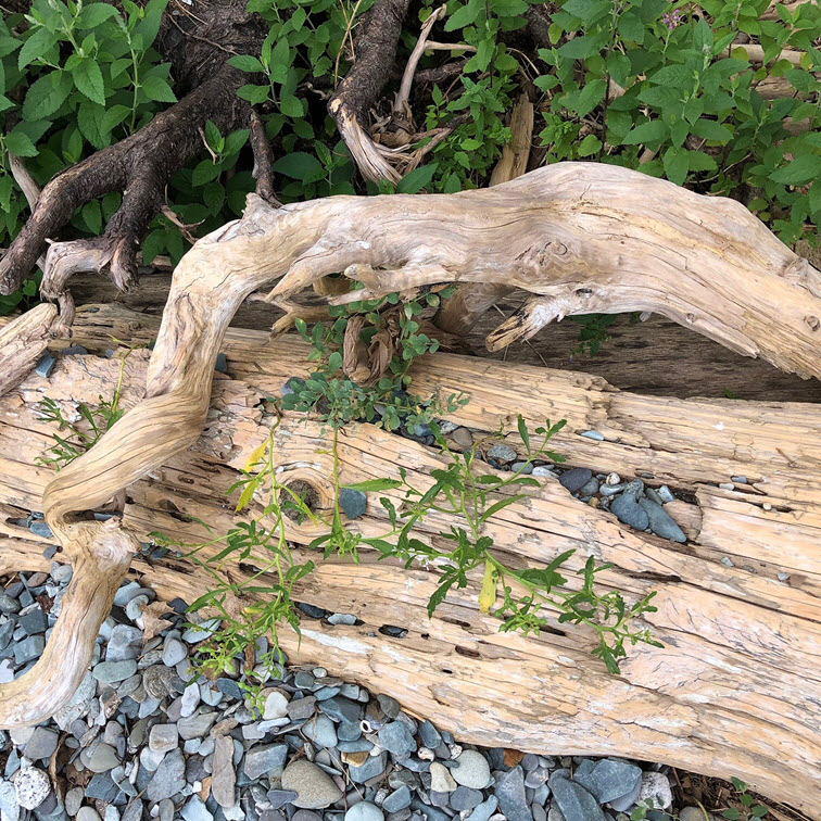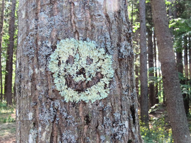 Then bam, a log, uprooted and cut off, stopped me in my tracks, and a family of dried, curled-up leaves stood sentinel by the side of the path. For leaves, contraction is the natural order of things, but as my own anthropomorphic, poetic sensibilities kicked in, I saw them as nature’s way of telling me to soften, relax, and open. At which point the mossy smiley face appeared on the path as a reminder of Joy.