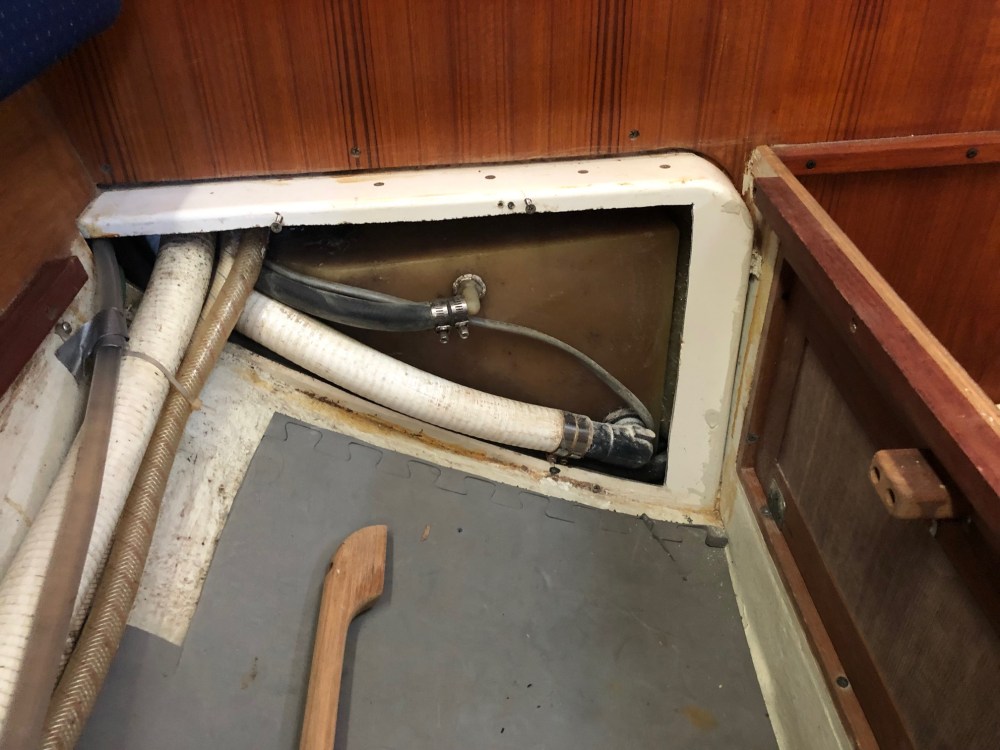 The head holding tank that will be converted into a fresh water tank with water created by reverse osmosis!