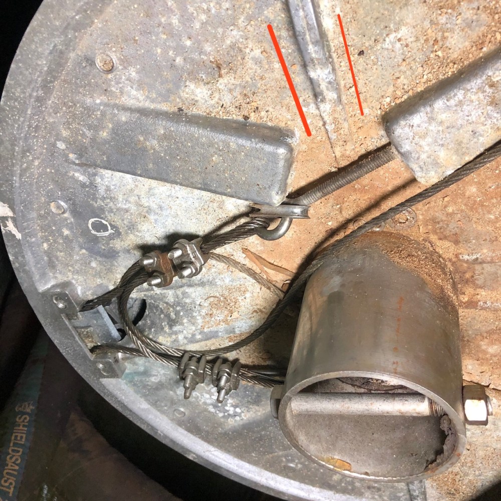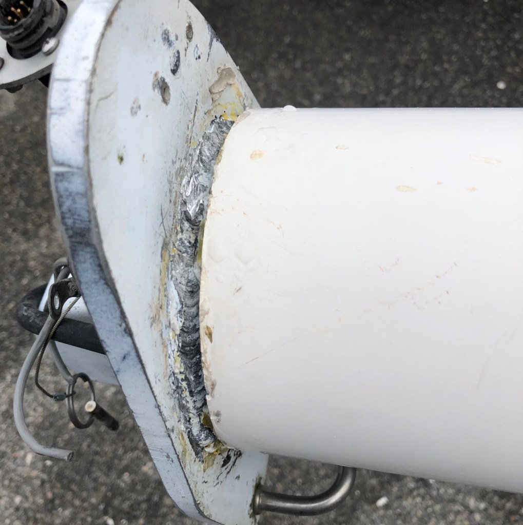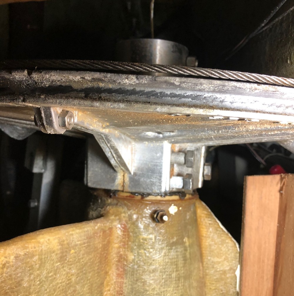 And the mast comes out, with the remnants of the disintegrated foam around the wires in the mast, obviously not doing its job